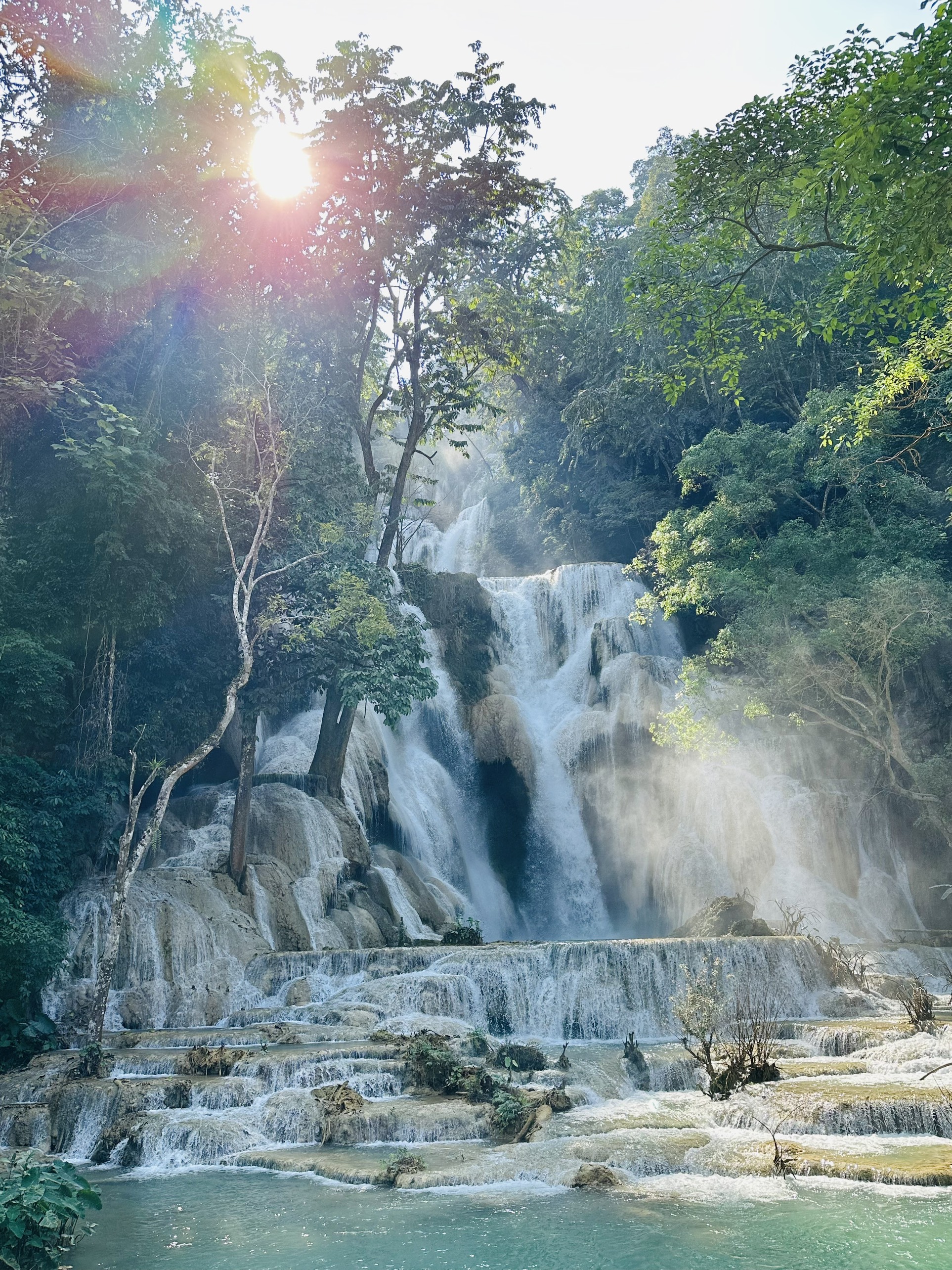 Đoàn thích thú với khung cảnh thiên nhiên kỳ vĩ của thác nước Kuang Si xanh biếc