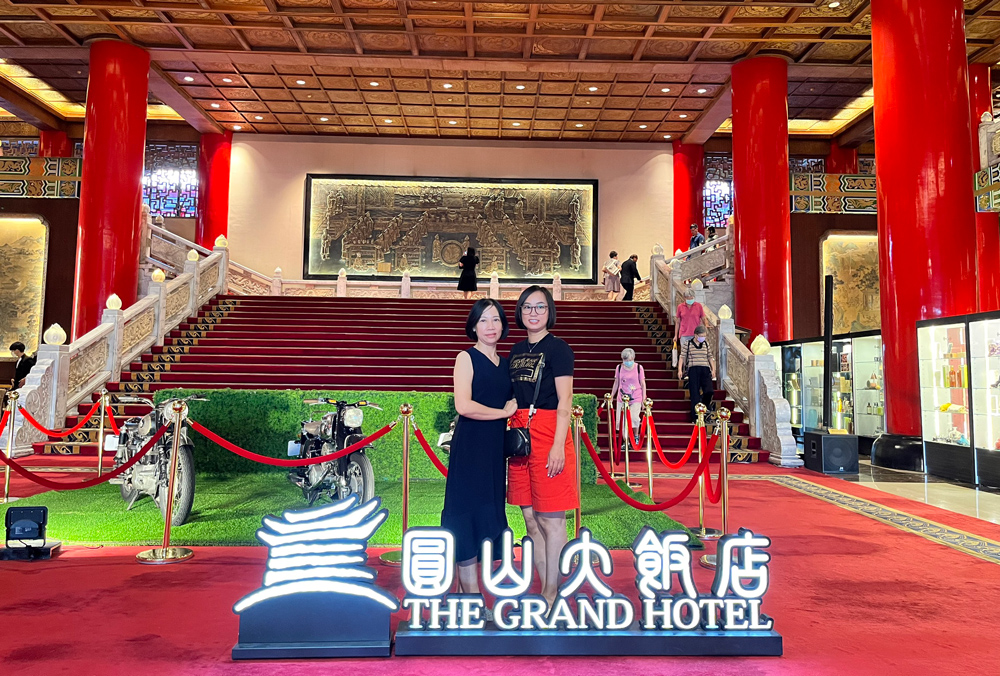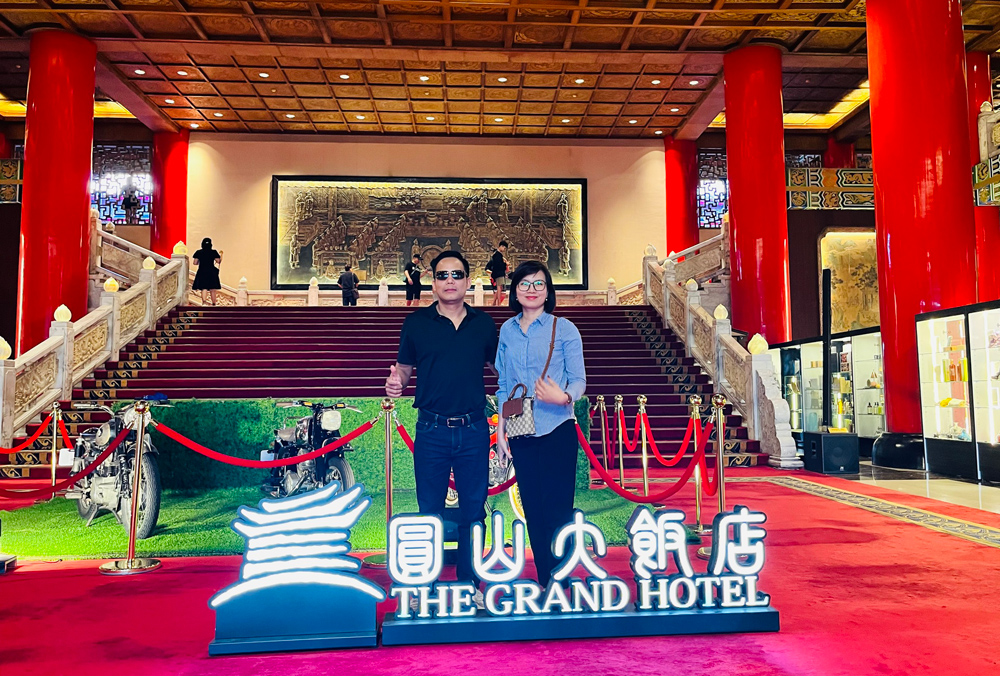 Vietlike và CBCNV công ty Nagakawa chụp ảnh lưu niệm trước The Grand Hotel - một trong những khách sạn nổi tiếng và sang trọng bậc nhất Đài Loan trước khi tiến vào tham quan bên trong