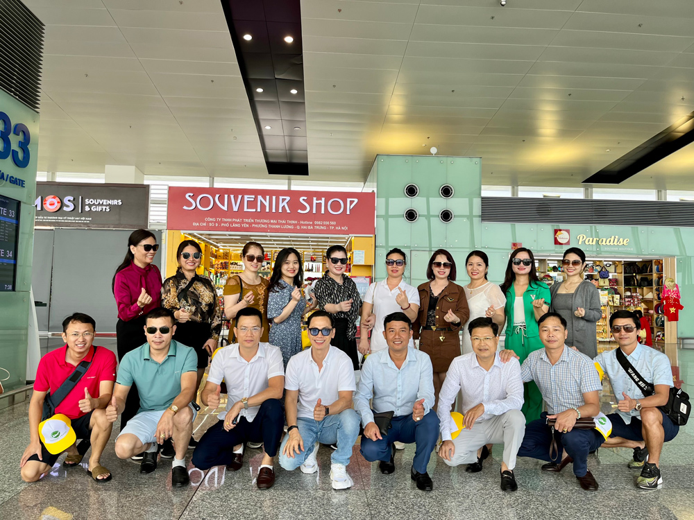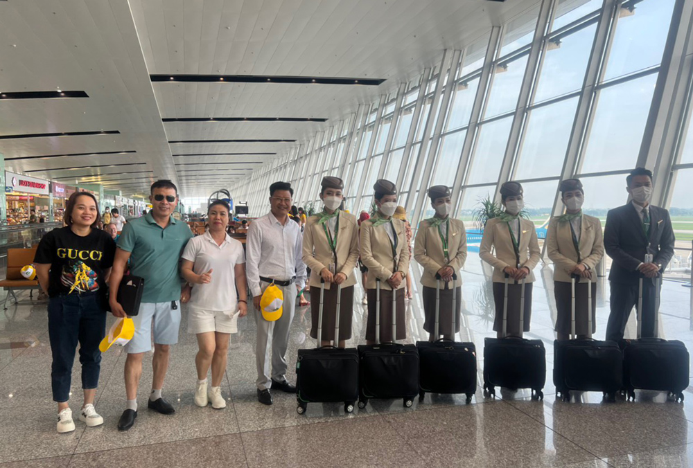 Đoàn chụp ảnh lưu niệm tại sân bay
