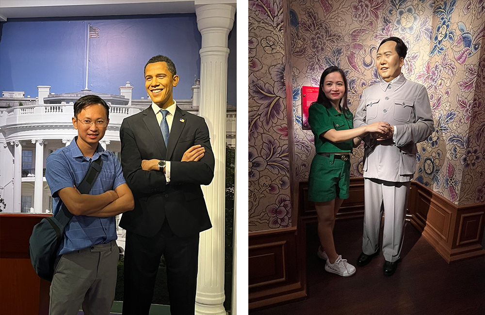 Tôi đã từng đến Bảo tàng tượng sáp ở Bà Nà Hills (Đà Nẵng). Nhưng lần tham quan tại bảo tàng ở Singapore, tôi khá bất ngờ vì độ tinh xảo và chi tiết của các tác phẩm ở đây. Tôi đã chụp hình với bức tượng Cựu tổng thống Mỹ Barack Obama." - Một thành viên trong đoàn chia sẻ.